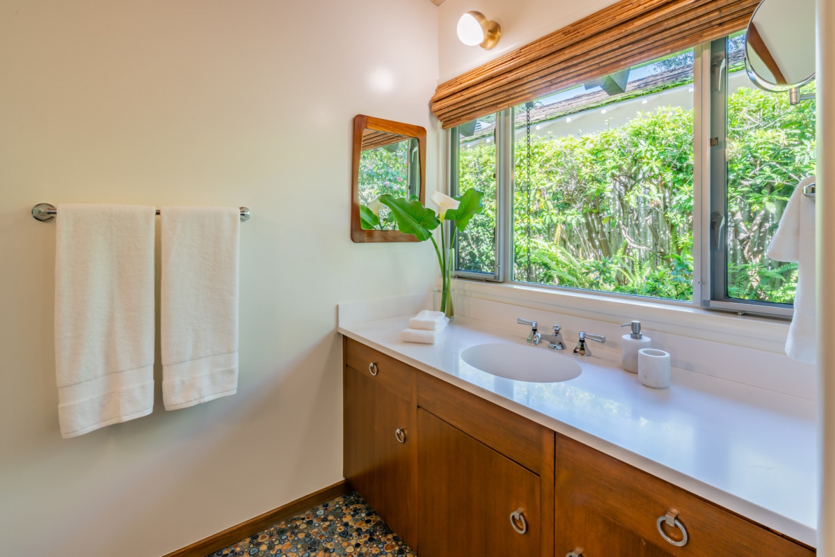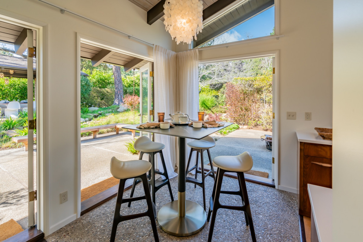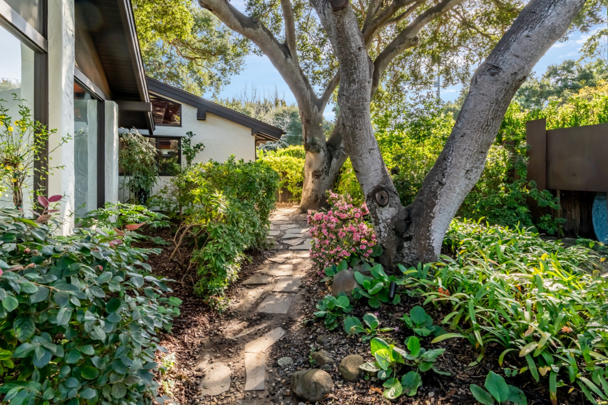 Tucked among the trees and mountains, this magical mid-century modern home is the perfect place to relax and be enchanted. Get your nature fix with just a few steps out the door! At the end of your charming stone path, you'll find the Ennisbrook trail teeming with flowers, trees, and paths to explore. After a day amidst the eucalyptus, shower off in your immaculate bathroom and hit the town for cocktails and a sunset at the Rosewood Miramar Beach, just minutes away. Or head downtown onto the happening Coast Village Road for a posh dinner at the classic Lucky's Steakhouse or beloved Honor Bar.