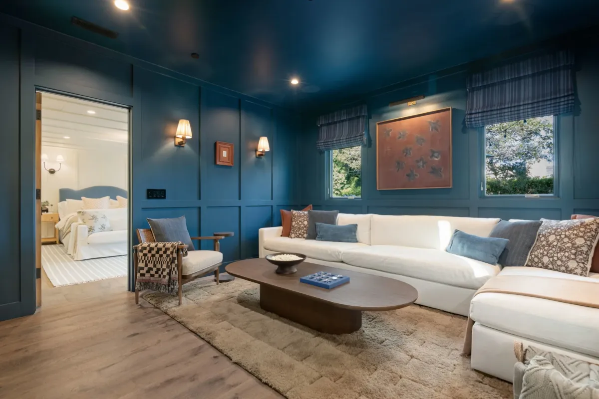 The media room boasts an 85-inch Sony 4K TV with Dolby Vision HDR and immersive Dolby Atmos surround sound, which makes for a perfect screening room.
