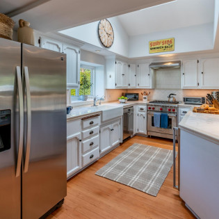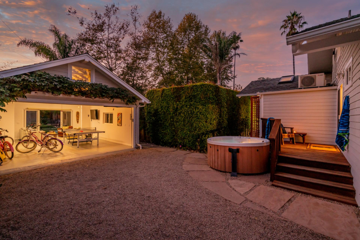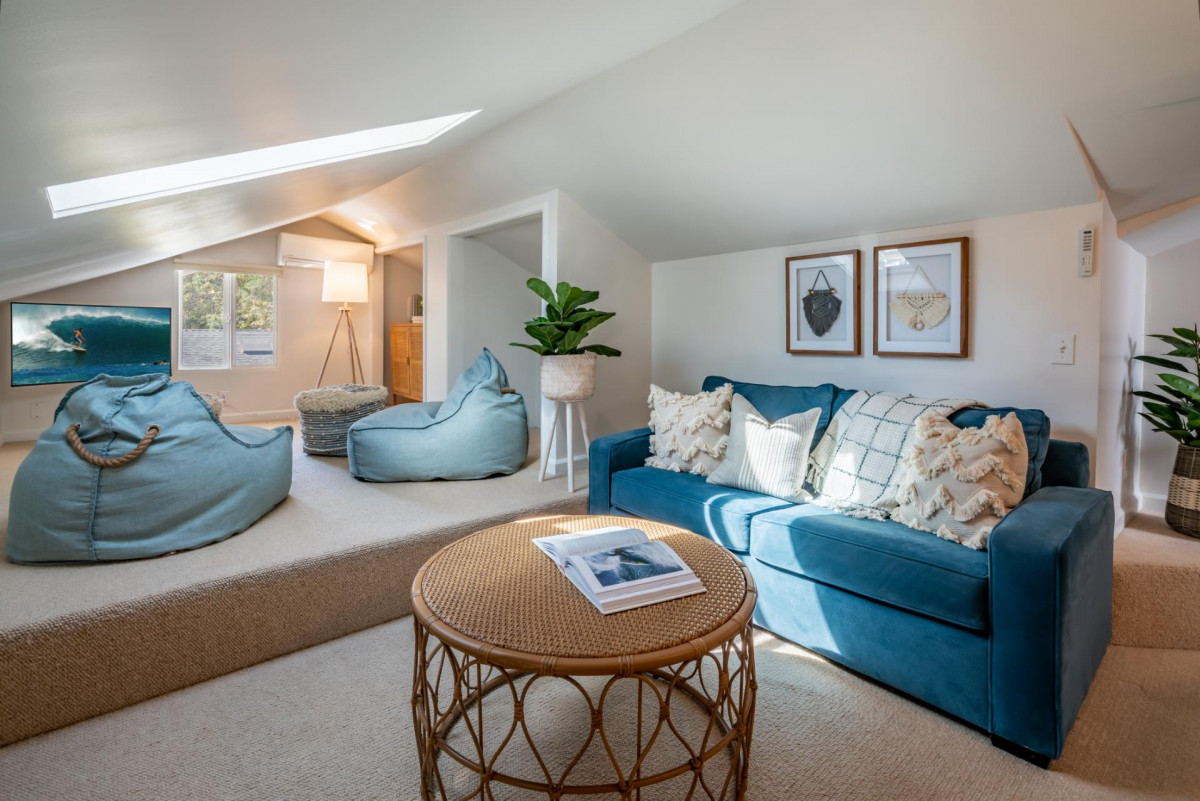 Step inside the memorable home to be greeted by a rustic handmade river rock fireplace in the Living Room that flows into a bright and fully stocked Kitchen with stainless Wolf appliances. The separate Dining Room with French doors connects to a spacious entertainment deck for dining under the stars. The luxurious three Bedrooms and three Bathrooms are complemented by a converted attic space offering additional lounge and sleeping space. That's not all - the detached garage is now a game room with a flat-screen television, ping pong table, an EV charging outlet/cable, bicycles, and beach toys to enhance your stay.