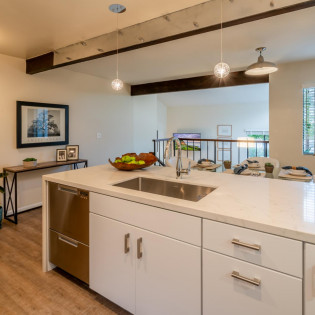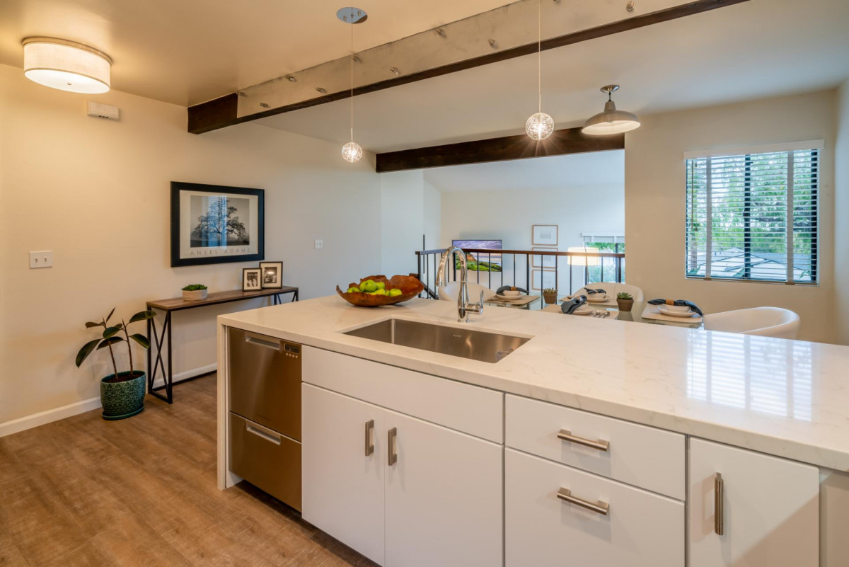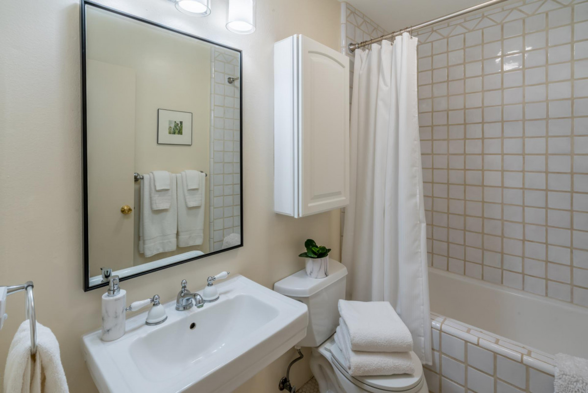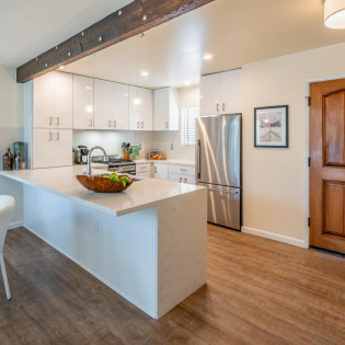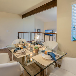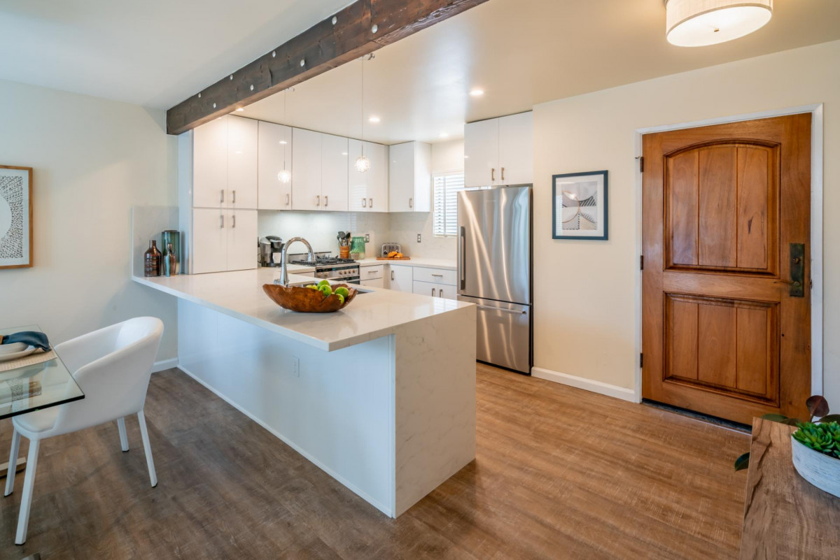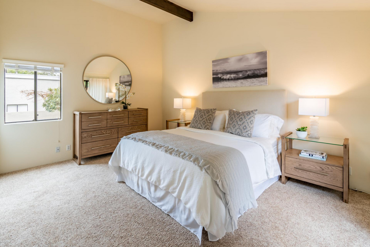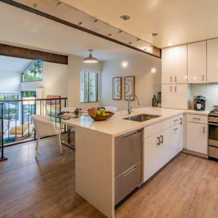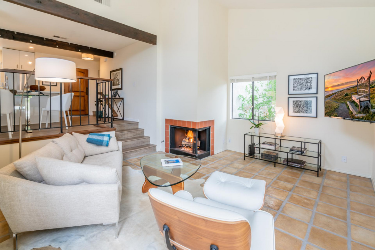 Step inside this chic and modern home and enjoy its open concept Kitchen and Dining nook. Step down into the Living Room and relax near the fireplace on the cozy couch with a palm-tree-lined view of the ocean in the distance. The two Bedrooms and Bathrooms are spacious with vaulted ceilings and complete with high-quality linens.