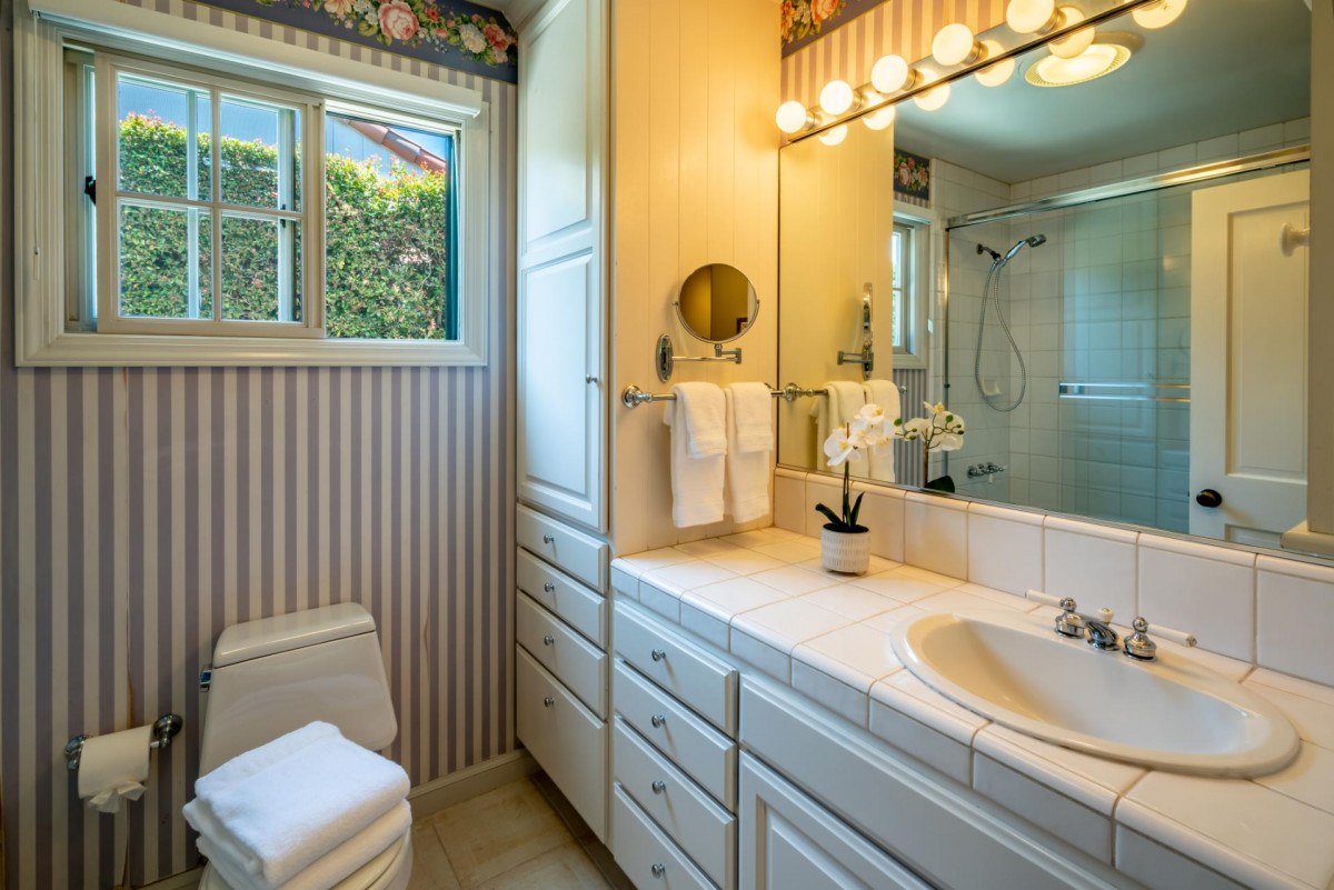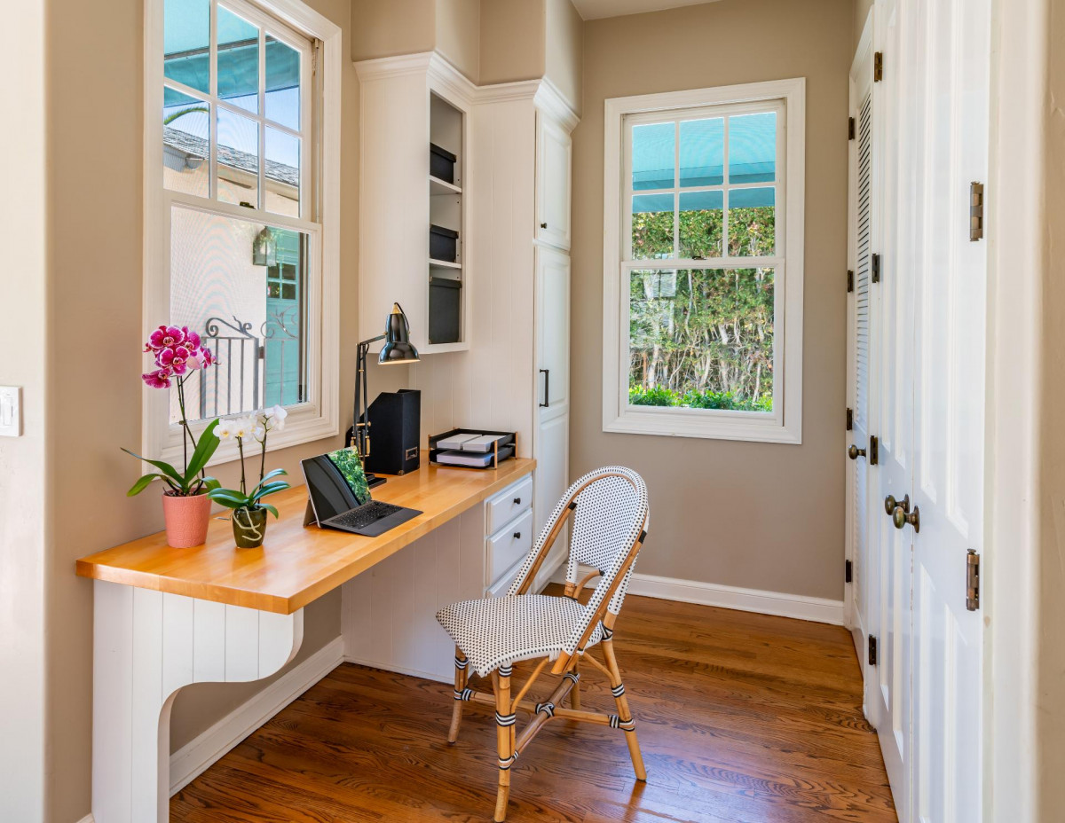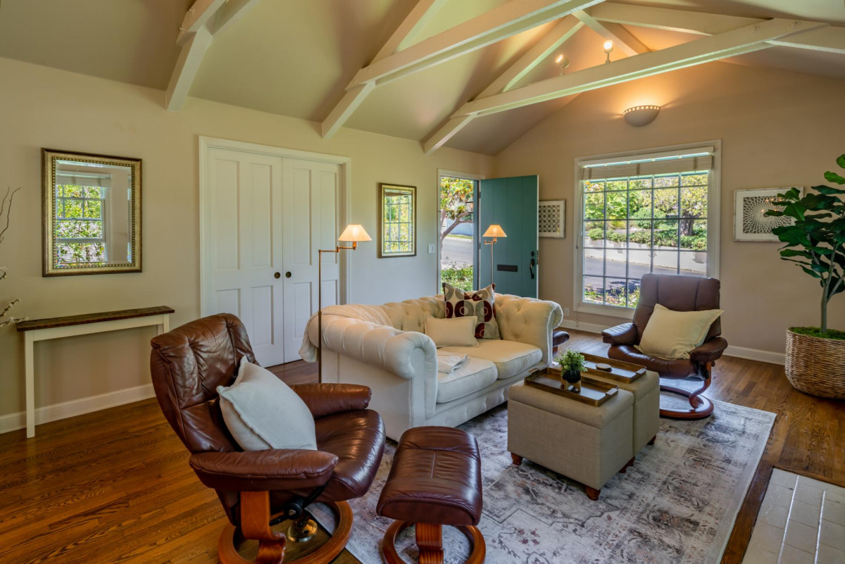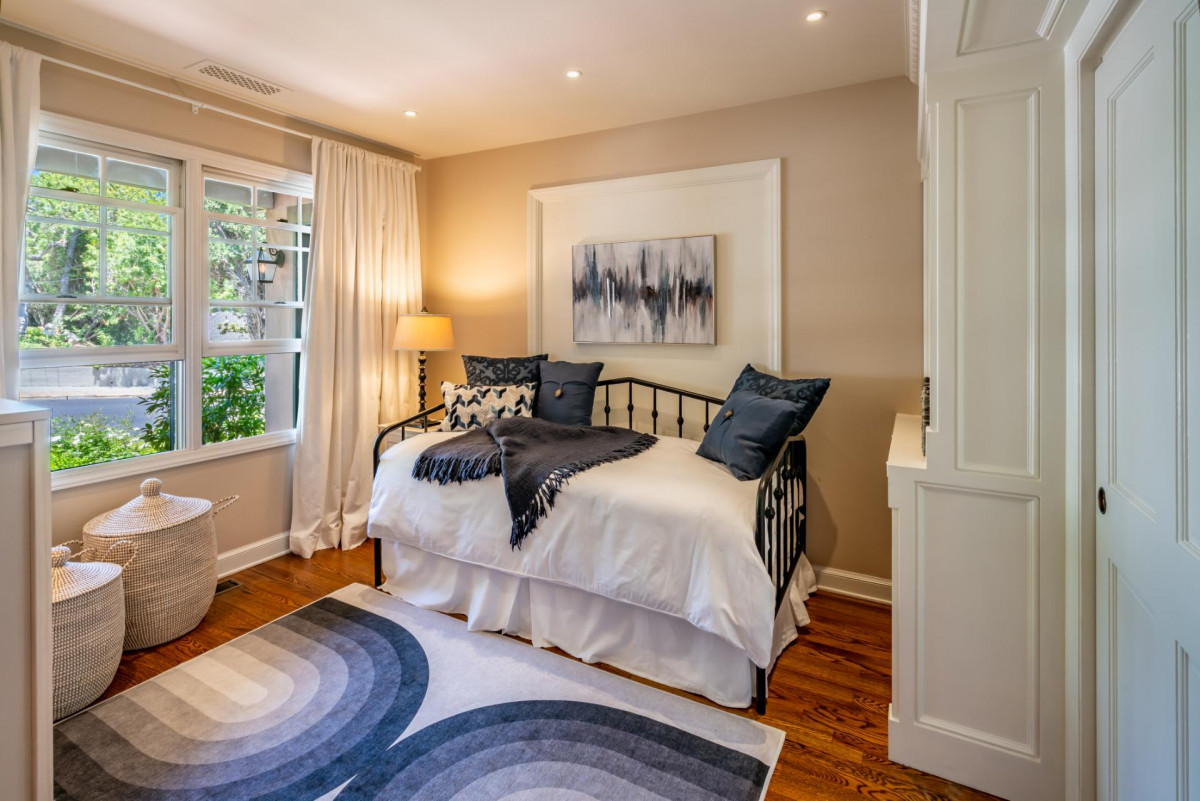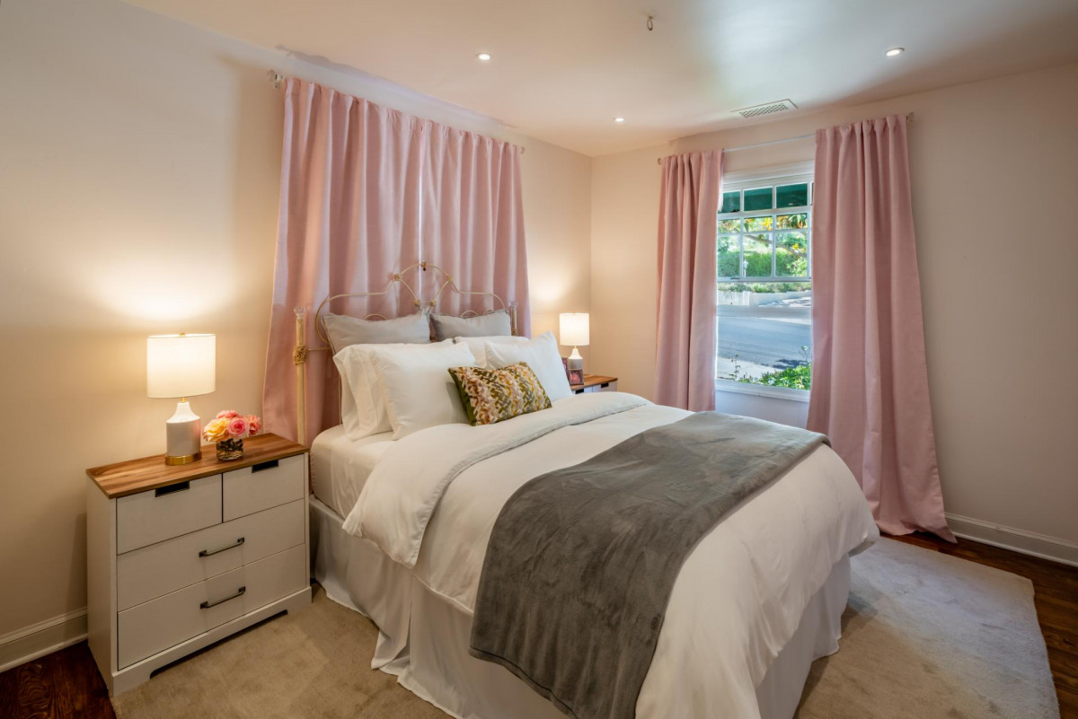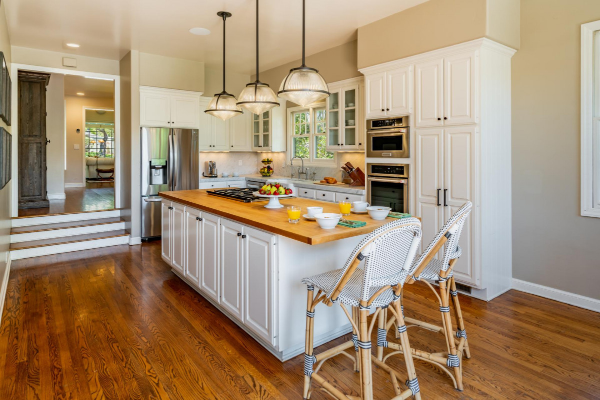 This 1940s classic cottage has undergone a substantial makeover to retain its old-world charm while providing modern amenities. Original oak hardwood, vaulted ceilings, and a cozy fireplace will greet you in the Living Room, which extends to the formal Dining Area. The expertly designed Kitchen is complete with Carrera marble counters, a farmhouse sink, and a large cooktop island. A built-in desk sits in a Kitchen nook offering a perfect spot to catch up on emails. Three Bedrooms and Two and a half Bathrooms offer all the comfort and relaxation you’d hope for. French Doors from the Kitchen lead outside to a Saltillo tile patio with a dining area, built-in grill, a jungle gym for kids, and a sprawling lawn. We’d be remiss if we didn’t mention the carefully manicured landscaping featuring native wildflowers, shady trees, and rose bushes, all adding to the alluring aesthetic of this home. It's the perfect place to stop and smell the roses.