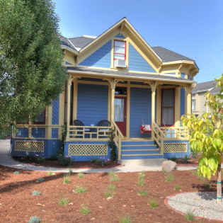 Built in the 1870s, this colorful home has all the charm and whimsy you could hope for. You’ll be greeted by a relaxing porch swing overlooking fruit trees and bee-friendly gardens. Step inside to a classic Living Room with an elegant fireplace, bay windows, and ornate finishes. The formal Dining Room has a fireplace, space for ten guests and leads into a stocked Kitchen. The Bathrooms are fully remodeled with modern conveniences while keeping old-world charm. Three Bedrooms and a Den offer more than enough sleeping accommodations for a large family. The back patio is complete with a dining area and grill framed by more fruit trees and gardens.