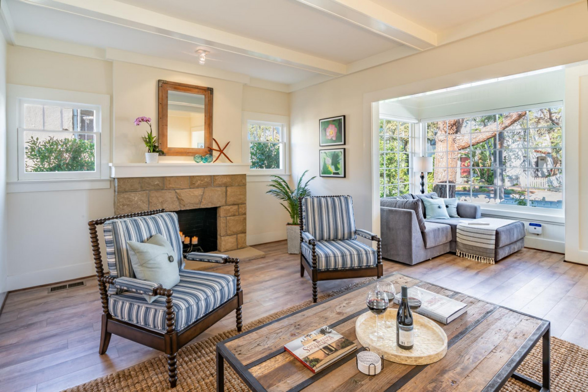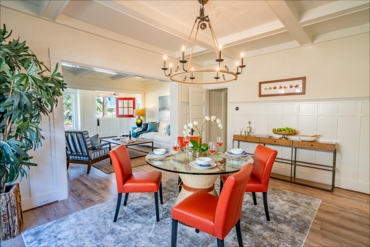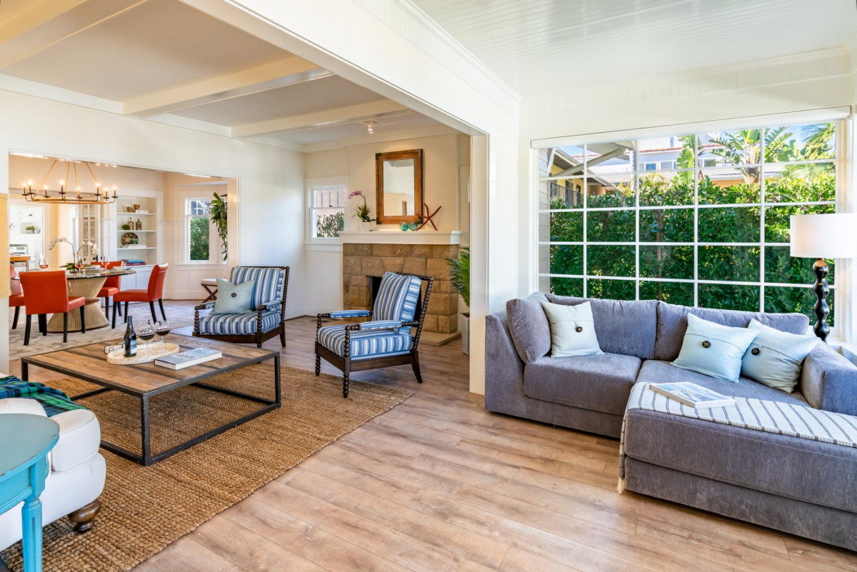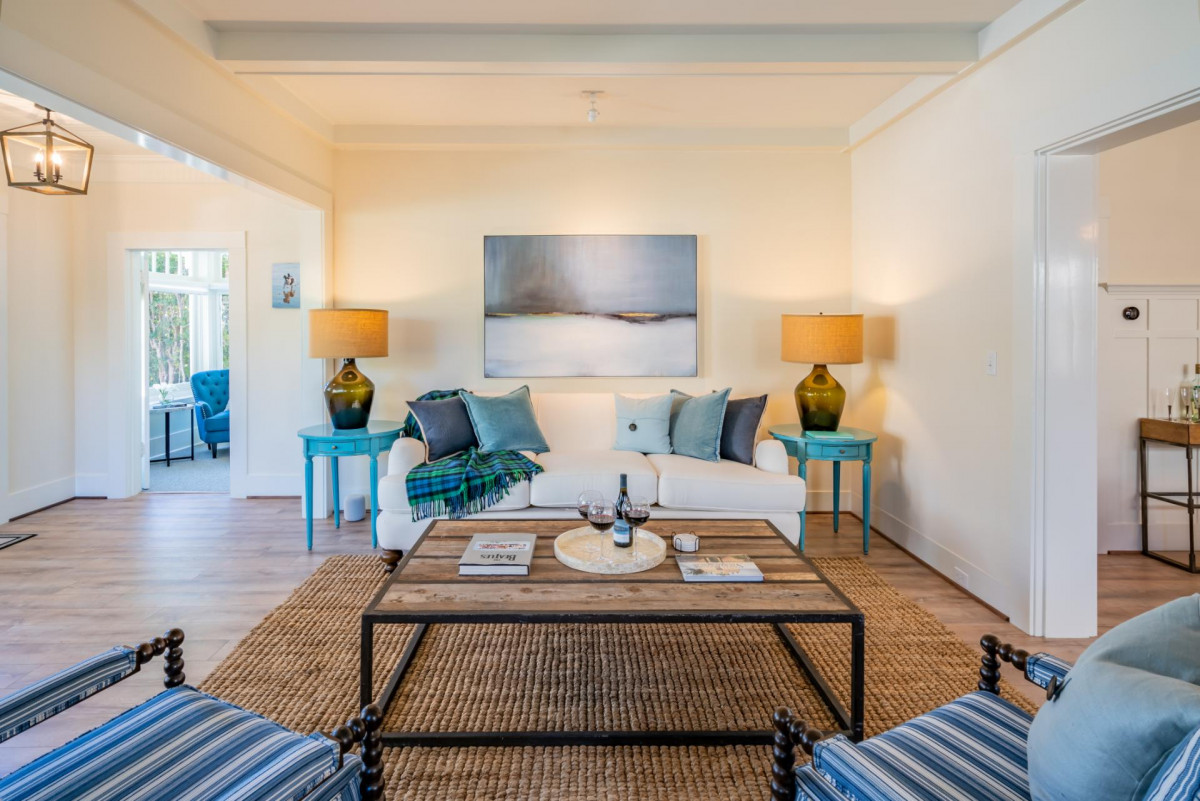 Built in 1911, this historic cottage has been impeccably restored honoring its vintage charm while including modern conveniences. Designed for living a relaxed seaside life, the property is filled with natural light and fresh air. The formal Living Room features plenty of seating and an attached sunroom for additional lounging options. The chandelier focused Dining Room leads into a fully renovated Kitchen with stainless steel appliances. The Bedrooms all offer stylish decor and the Primary Bedroom features a sunny reading nook. The property features a private indoor hot tub, exercise room, outdoor dining, and grill.
