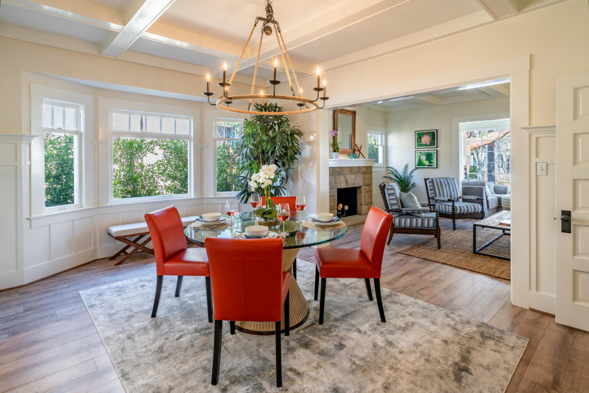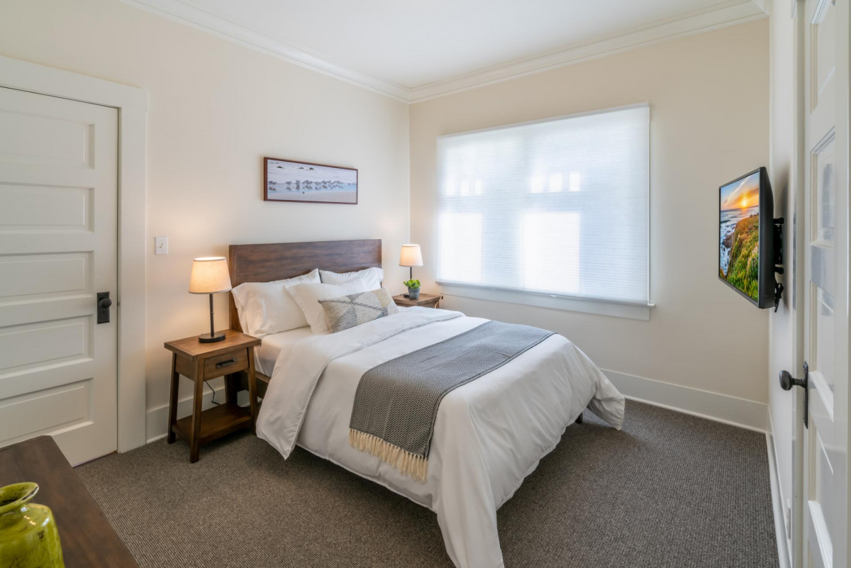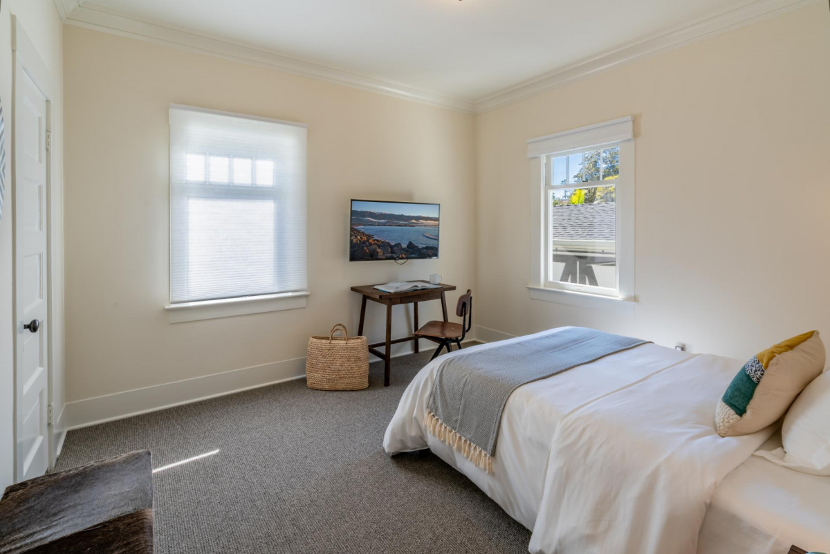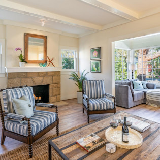 Built in 1911, this historic cottage has been impeccably restored honoring its vintage charm while including modern conveniences. Designed for living a relaxed seaside life, the property is filled with natural light and fresh air. The formal Living Room features plenty of seating and an attached sunroom for additional lounging options. The chandelier focused Dining Room leads into a fully renovated Kitchen with stainless steel appliances. The Bedrooms all offer stylish decor and the Primary Bedroom features a sunny reading nook. The property features a private indoor hot tub, exercise room, outdoor dining, and grill.